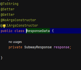 SubwayResponse 클래스는 대충 static inner class로 여러 데이터를 받는 형식으로 구성되어있다. (너무길어서 뺌)