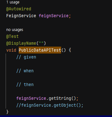 Feign을 사용하려면 interface를 작성하고 해당 interface에 annotation들을 선언해주면 된다.