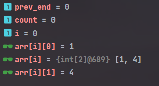 루프 첫번째(시작) 1시부터 4시가 들어오고 prev_end는 이제 4로 지정될 것이다. 그러면 한 회의가 진행되므로 count++